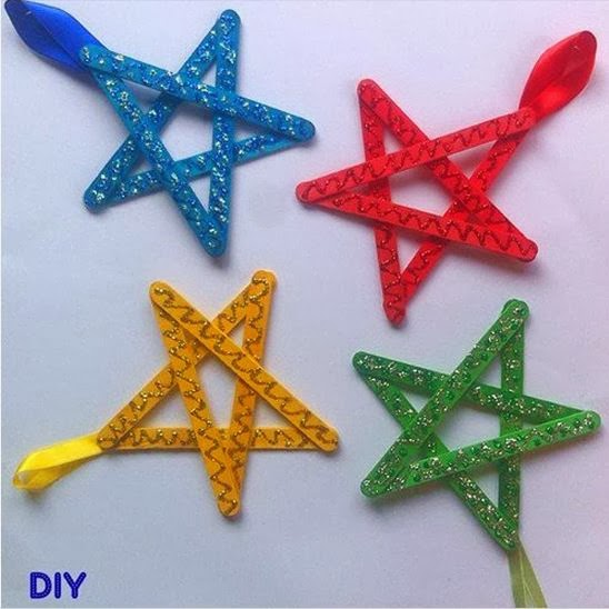 Elkészítése nagyon egyszerű! A spatulákat csillag alakban összeragasztjuk, majd festjük! Száradás után szalagot ragasztunk rájuk és dekoráljuk őket akár csillámos tollal akár gyöngyökkel vagy csillámporral, flitterekkel, dekorgyönggyel, stb.