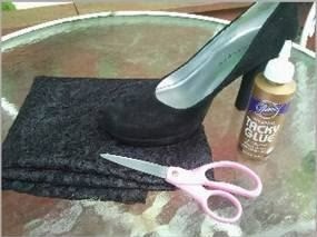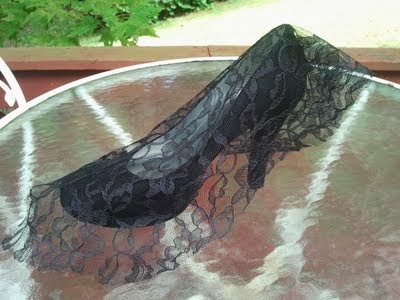 A csipkéből kivágunk egy akkor darabot, hogy befedje a cipőt!