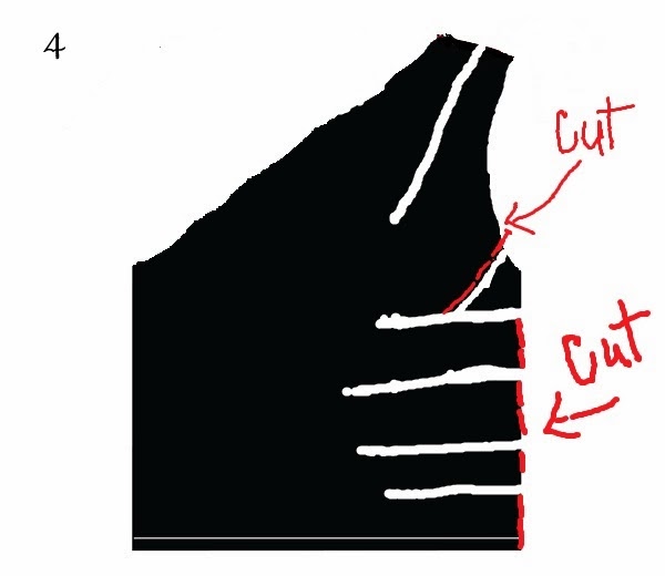 A képen látható módon vágjunk a hónaljánál ki egy kis darabot és az oldalát hosszában vágjuk fel!