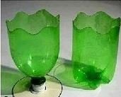 A műanyag flakont ketté vágjuk, majd a széleit hullámosra formáljuk!