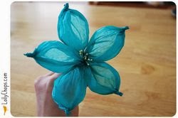 Az elkészítése bonyolultnak tűnik, pedig igazából nagyon egyszerű! A drótból meghajtogatunk minden egyes szirmot levelet! Ezt tehetjük akár egy feles pohárral is! A feles poháron körbe tekerjük a drótot és a két szárát egymásra tekerjük! A harisnyából kis darabokat vágunk le, amikkel bevonjuk a meghajlított szirmokat! A harisnyákat cérnával körbetekerve rögzítünk a dróton!